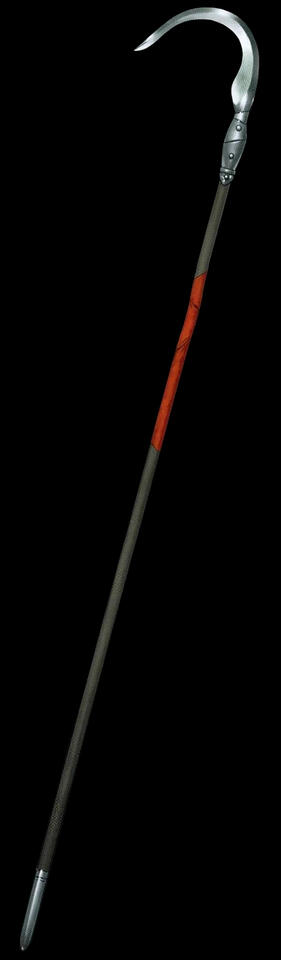 It is described as a monster-killing holy sword with a special shape similar to a scythe, having the cutting edge on the inside of the blade, though it isn't actually an outstanding sword by itself. Its true strength is its trait of Refraction of Longevity, which is a divine ability that nullifies the "undying attribute" of immortals and inflicts wounds that cannot be restored by any methods other than healing in accordance with the natural laws.